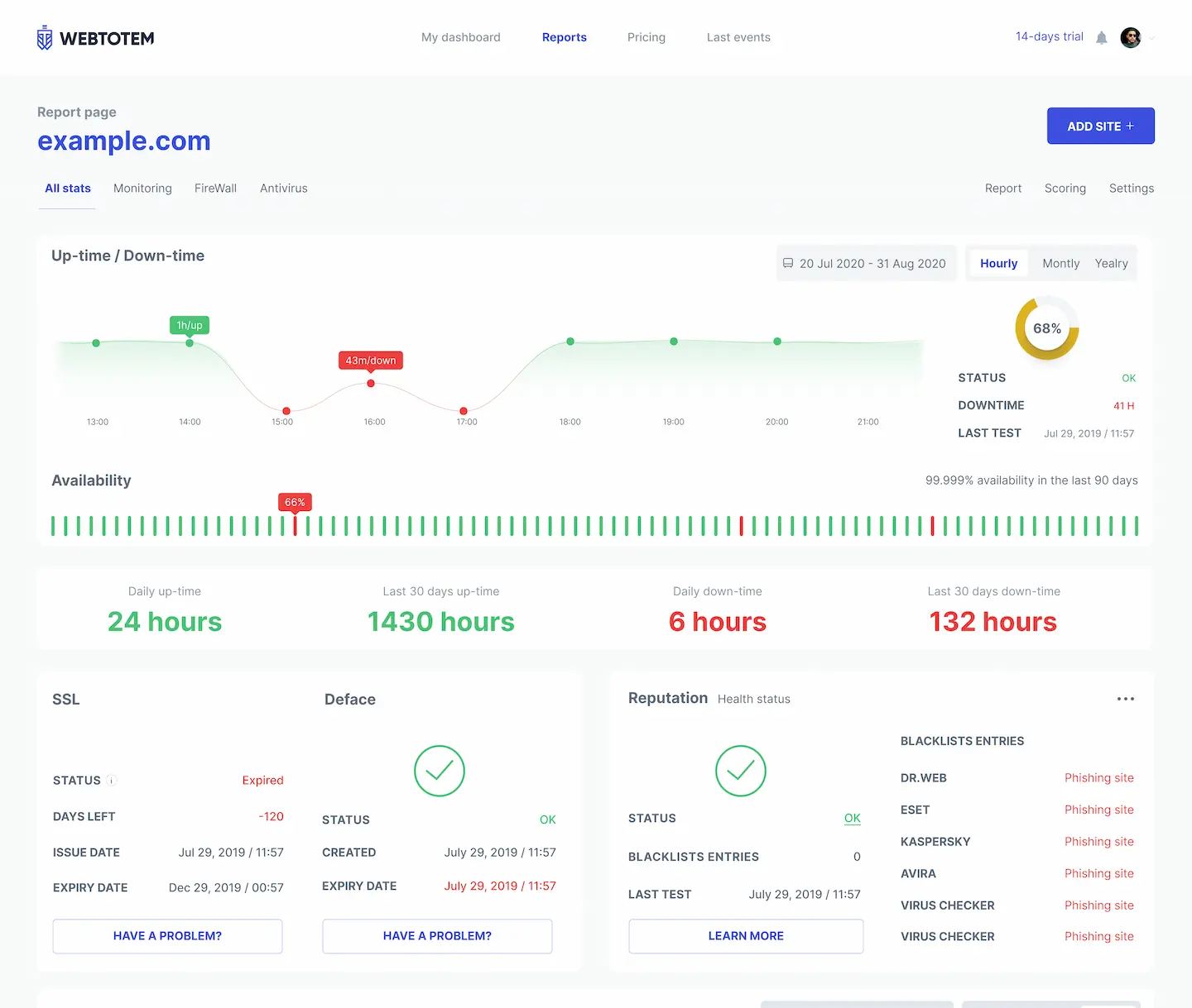 Continuous external monitoring of downtime, web reputation, SSL, domain expiry and much more